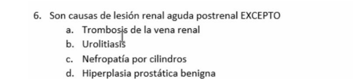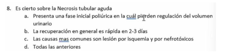 ) Las causas más comunes son lesión por isquemia y por nefrotóxicos