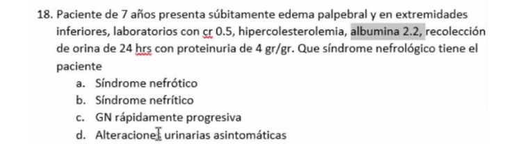 A) Síndrome nefrótico