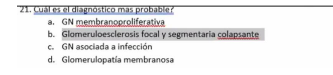 ) Glomeruloesclerosis focal y segmentaria colapsante
