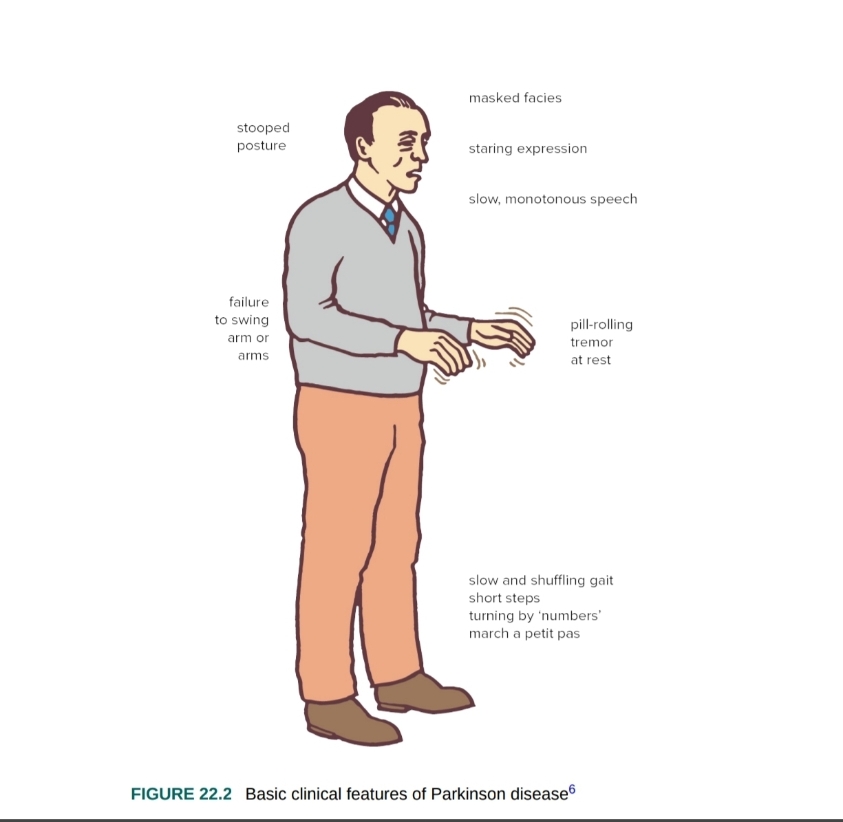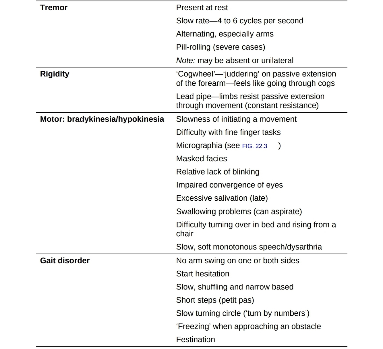 The characteristic movement is ‘pill-rolling’