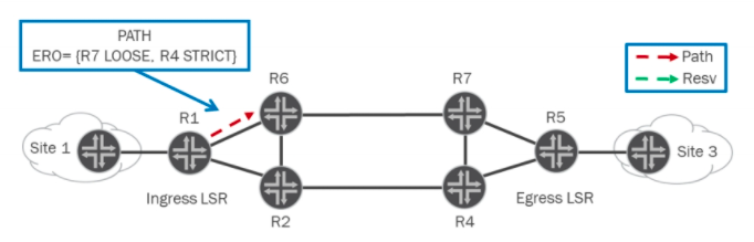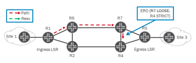 When the first constraint cannot be fulfilled, the loose qualifier creates a PATH state, and forwards the message onto the next constraint to be fulfilled using the best IGP route