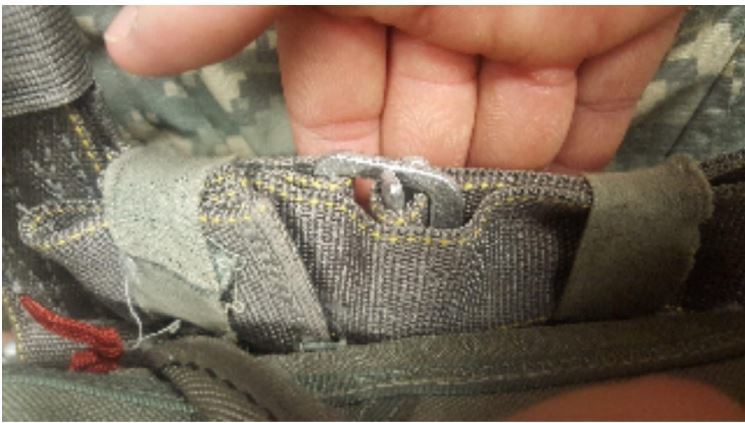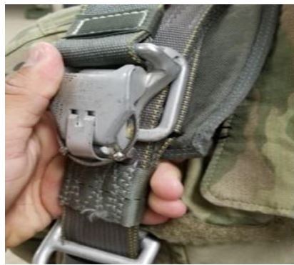 Excess webbing front left adjustable strap not secured
