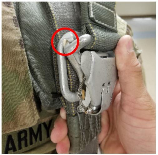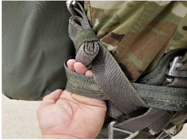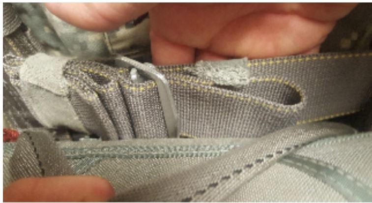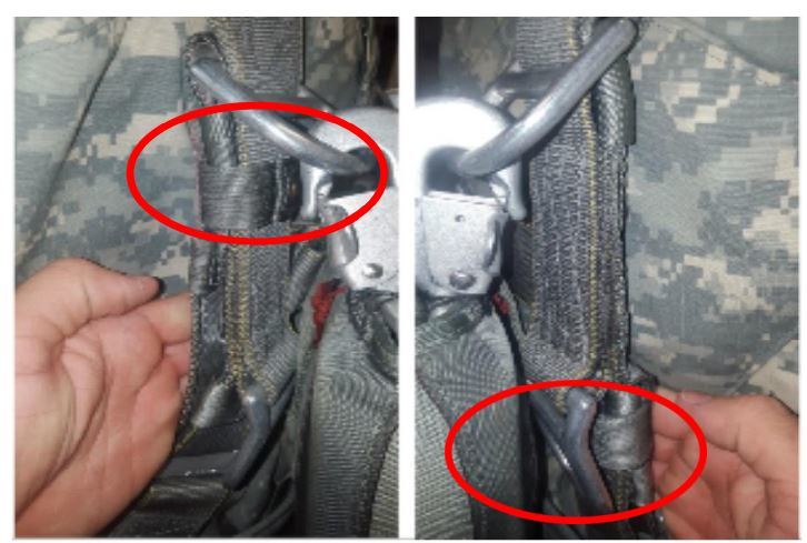 Chest strap misrouted around main lift web
