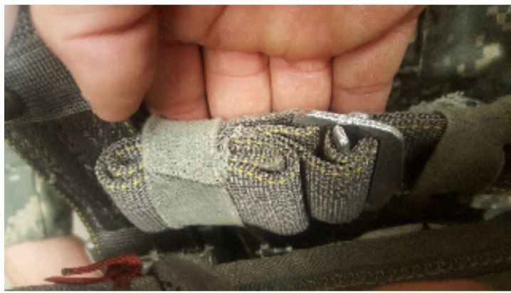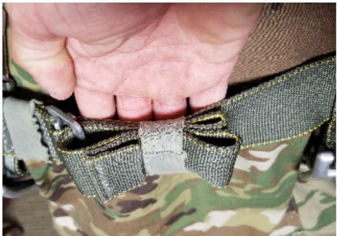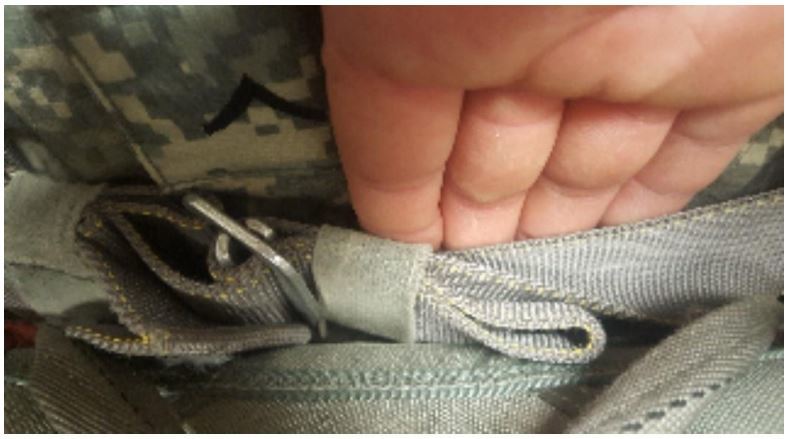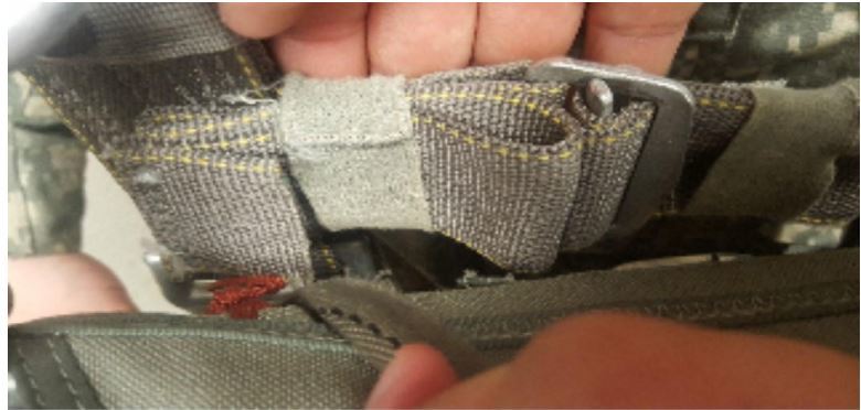 Excess webbing front right adjustable strap not secured