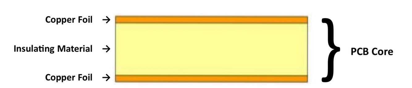Two sheets of copper are laminated to an insulating material