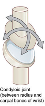 – contains a convex surface which articulates with a concave elliptical cavity. They are also known as ellipsoid joints.