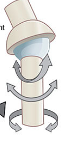 here the ball-shaped surface of one rounded bone fits into the cup-like depression of another bone. It permits free movement in numerous axes.