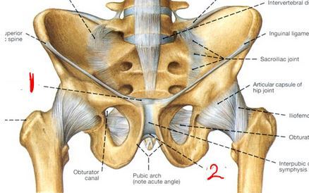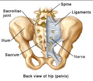 the pelvic girdle is the union of the sacrum and 2 hip bones at the (three joints)
