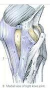 medial meniscus and joint capsule. It is weaker than the fibular collateral ligament and more often damaged.