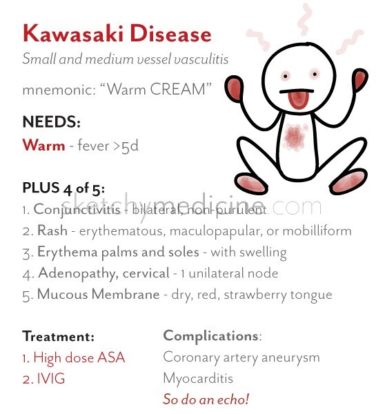 Minnisregla fyrir Kawasaki einkenni?