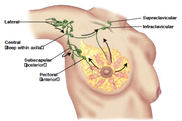 ●Pectoral nodes - anterior: closest to breast tissue, nodes drain the anterior chest wall & much of the breast