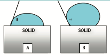 In the figure below, does A or B represent good wetting ability?