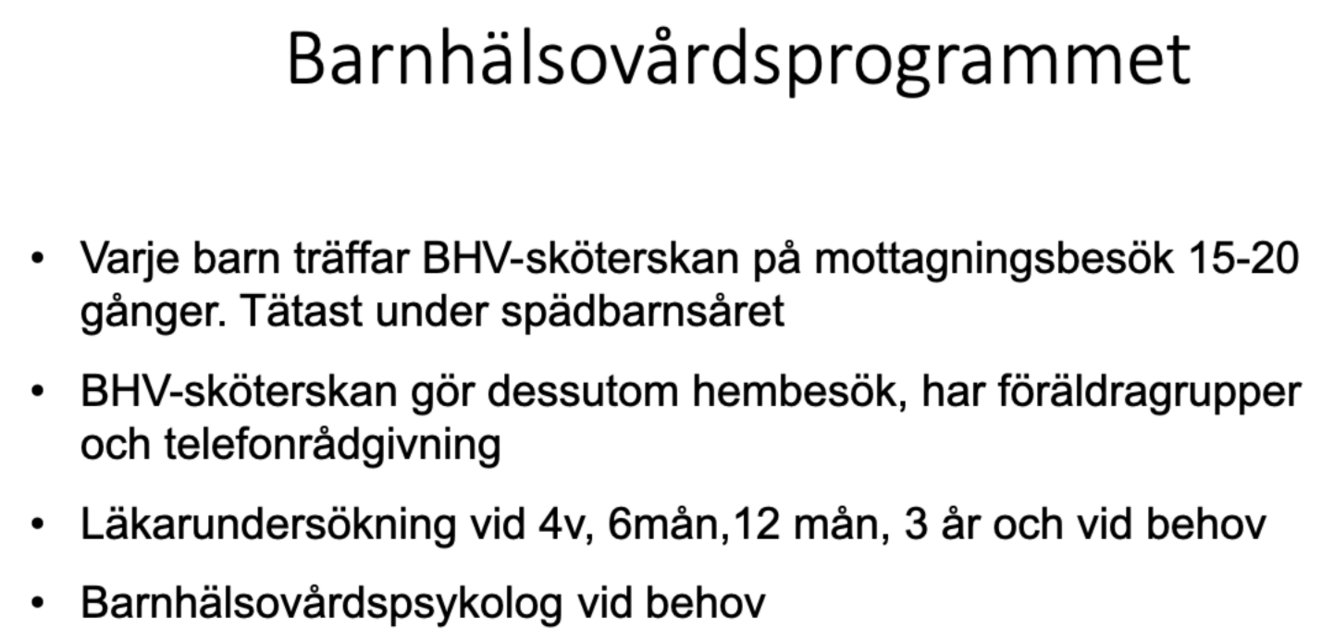 Vad ingår i barnhälsovårdsprogrammet? (2p)