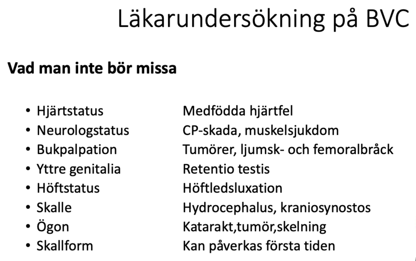 Vad undersöks vid läkarundersökningen på BVC? (3p)