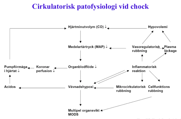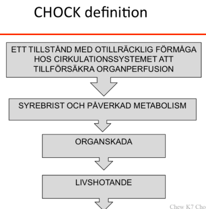 Beskriv patogenesen och mekanismerna bakom chock? (3p)