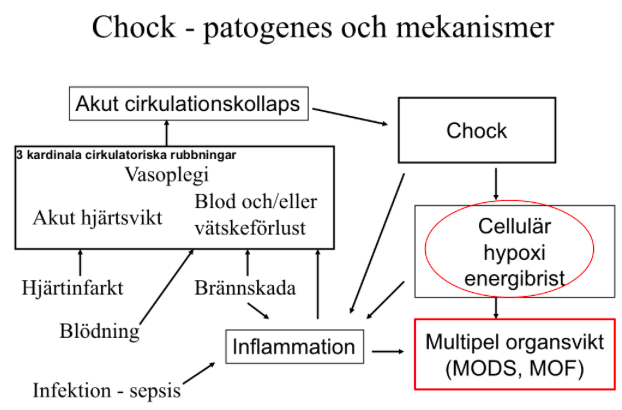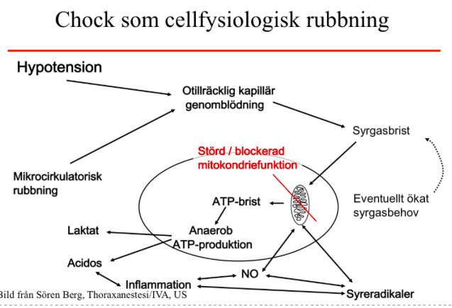 Beskriv mekanismerna för chock cellfysiologiskt, yäni vad händer i cellerna? (3p)