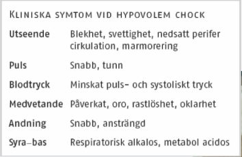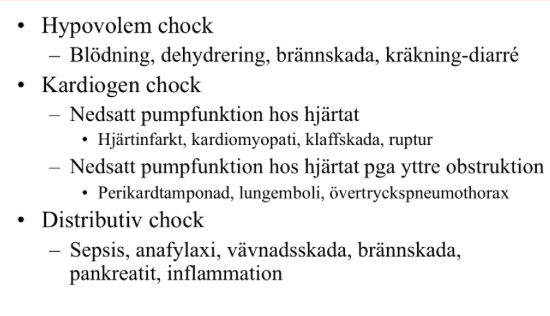 Det finns 3 typer av chock. Vid vilka olika tillstånd kan man se dom 3? (3p)