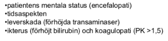 Vilka är parametrarna man ska titta på vid diagnos-sättning (akut leversvikt)? (2p)