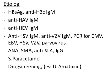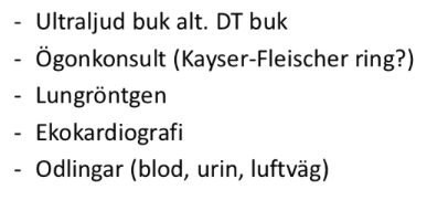 Vilka övriga undersökningar kan man göra på en patient med akut leversvikt, förutom blodprover? (2.5p)