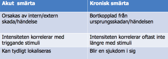 Beskriv dom stora skillnaderna mellan akut och kronisk smärta? (2p)