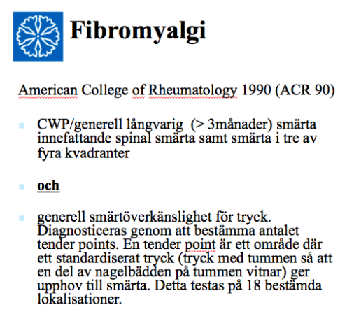 Hur definieras och diagnosticeras fibromyalgi? (2p)