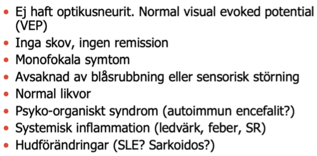 Tecken på att det inte handlar om MS utan någon annan diagnos? (2p)