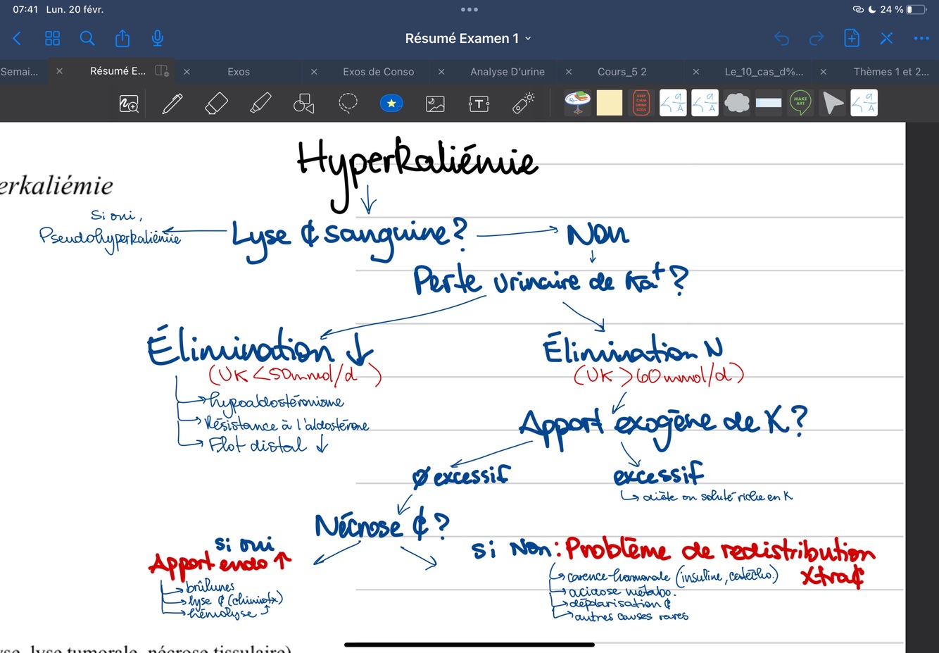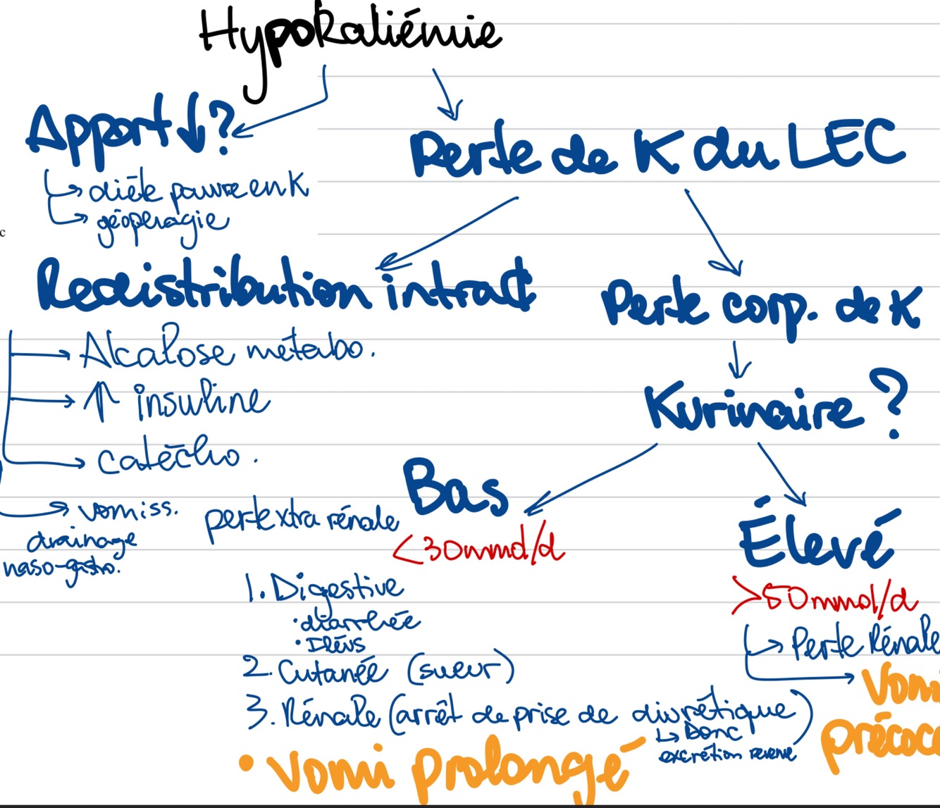 1.Perte rénale, c’est le rein qui excréte trop donc vide le corps du K