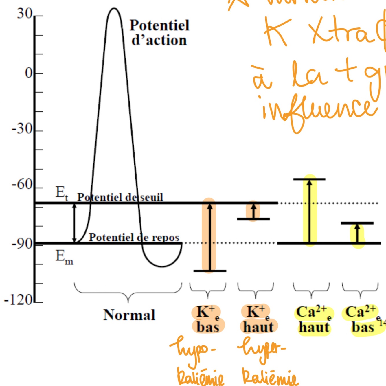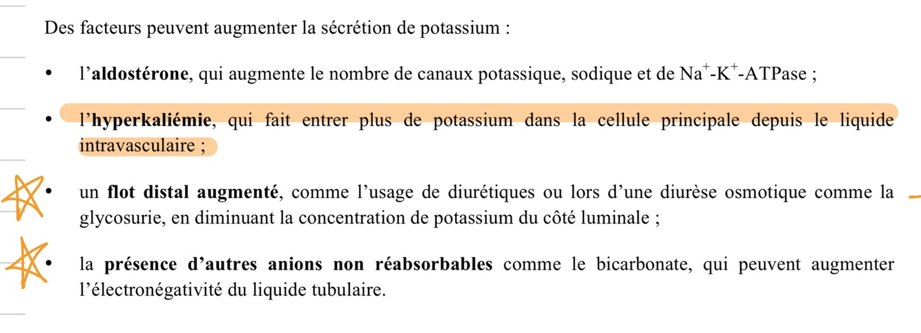 Facteurs qui font augmenter la sécrétion de potassium (4)