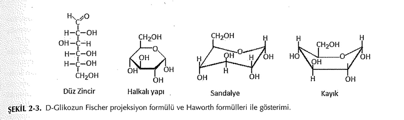 •Monosakkaritlerin halkalı yapısı Hawort formüllerinde olduğu gibi düzlemsel değildir. Sandalye ya da kayık şeklinde konformasyon gösterirler.