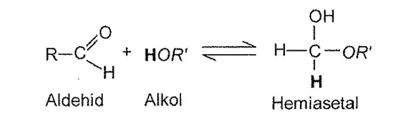 •Bir aldehit grubunun alkolle kondanse olması sonucu hemiasetal oluşur.