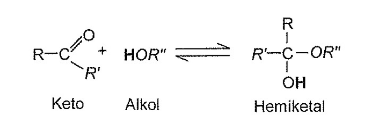 •Keto grubunun alkolle kondanse olması sonucu hemiketal oluşur.
