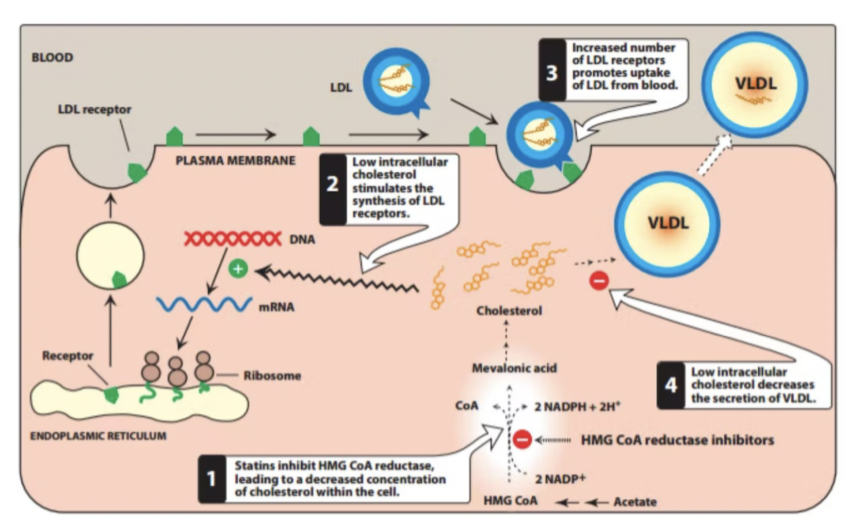 - Økt ekspresjon av LDL-reseptorer (økt clerance)