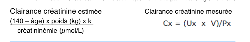 – Estimé de la mesure de la clairance de la créatinine (et non du DFG)