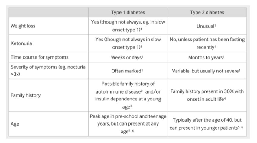 What are the differences in type 1 and type 2 diabetes?