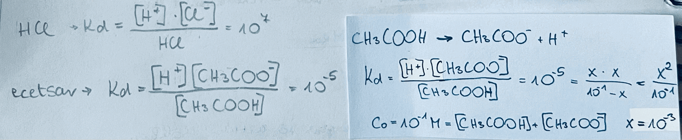 ecetsav és sósav disszociációs egyensúlyi állandó