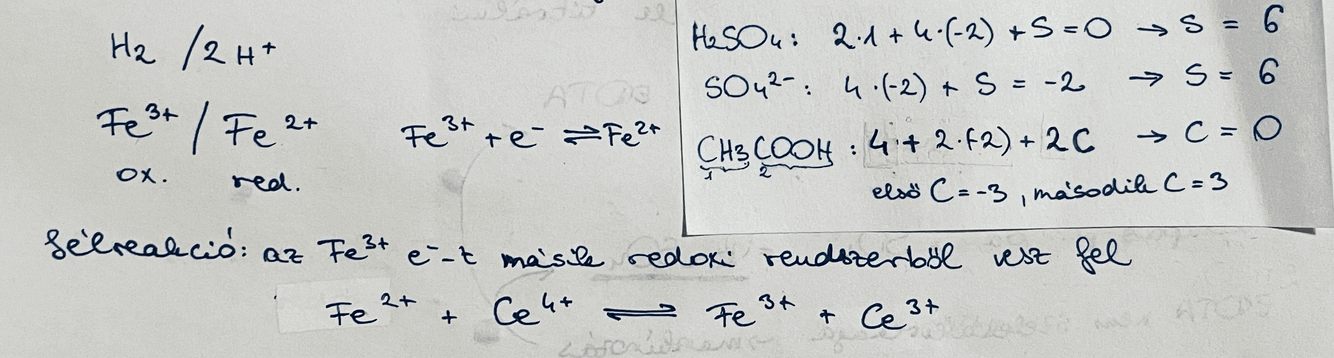 ha negatív → redukáló rendszer (Fe3+ + e- → Fe2+)