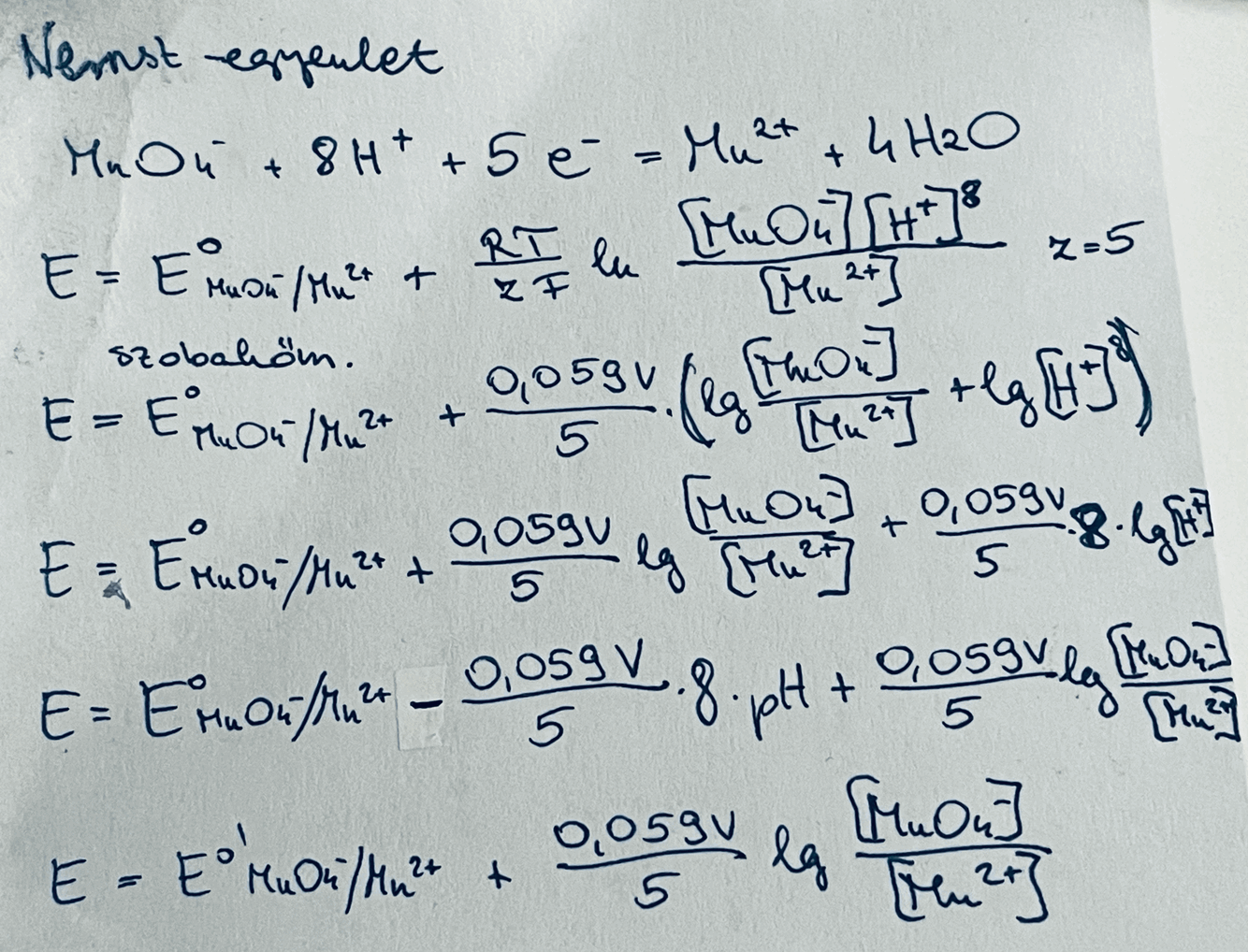 - egyensúlyban a 2 redoxi rendszer elektródpotenciálja kiegyenlítődik