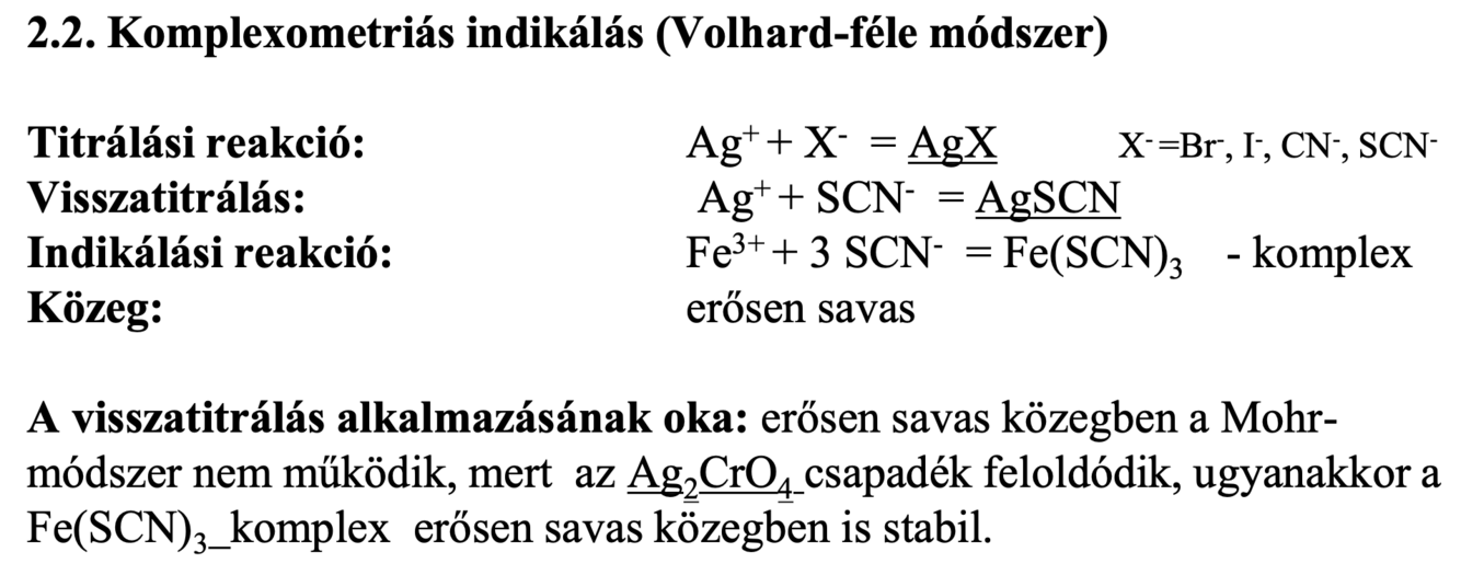 (argentometria) a mérendő ion az Ag⁺ ionnal rosszul oldódó csapadékot alkot
