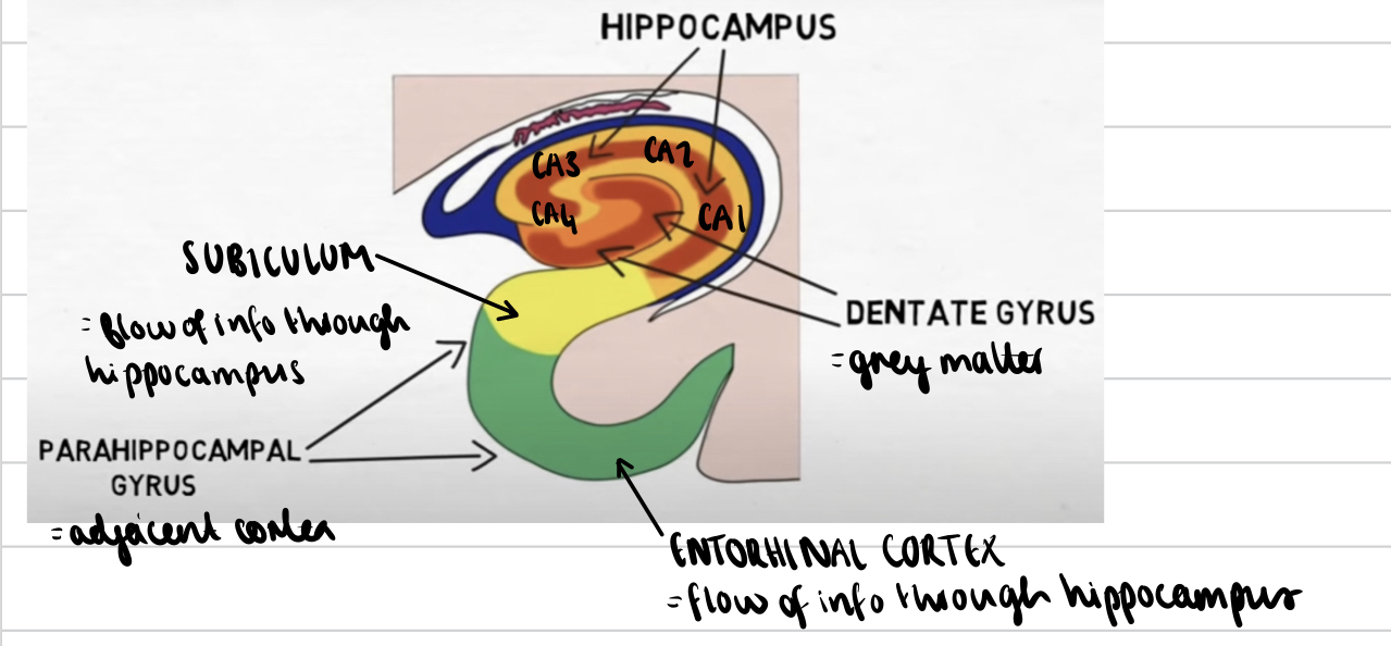 subiculum= main output, send fibers to the entorhinal cortex out to the cerebrum