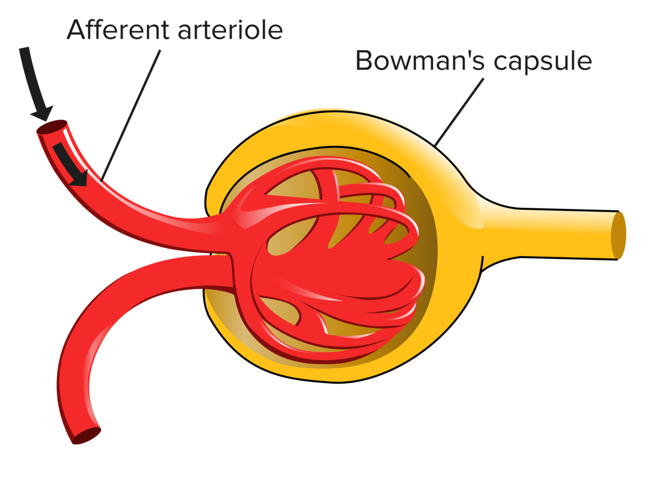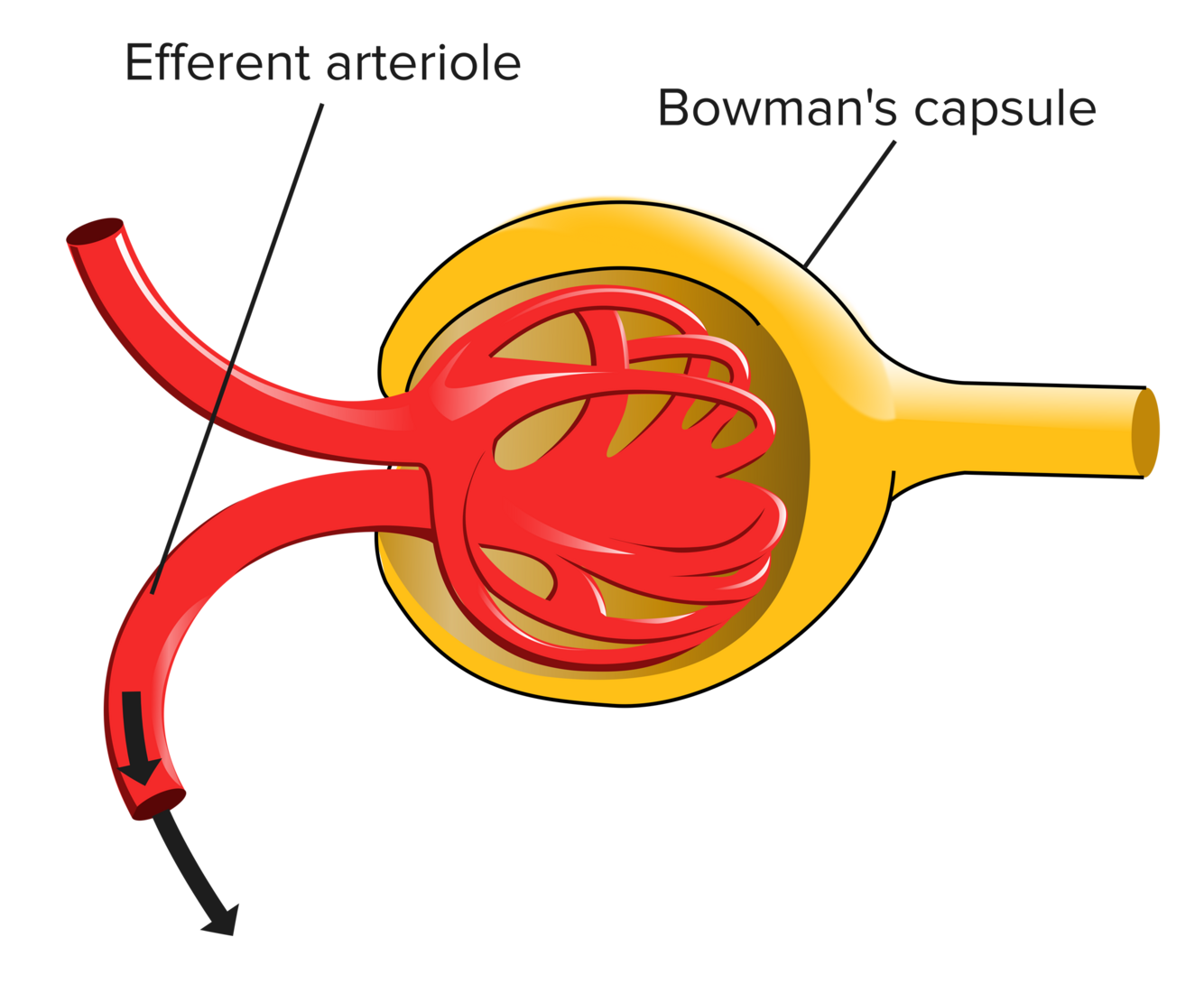 Remember that afferent vessels bring blood toward an organ, while efferent vessels carry blood away.