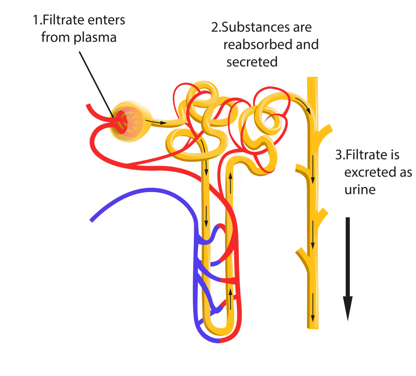 Important molecules that enter the filtrate, including glucose and amino acids, are simply reabsorbed from the nephron. Note that proteins are too large to be filtered.
