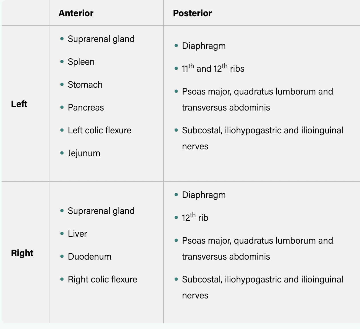 Pararenal fat – mainly located on the posterolateral aspect of the kidney.