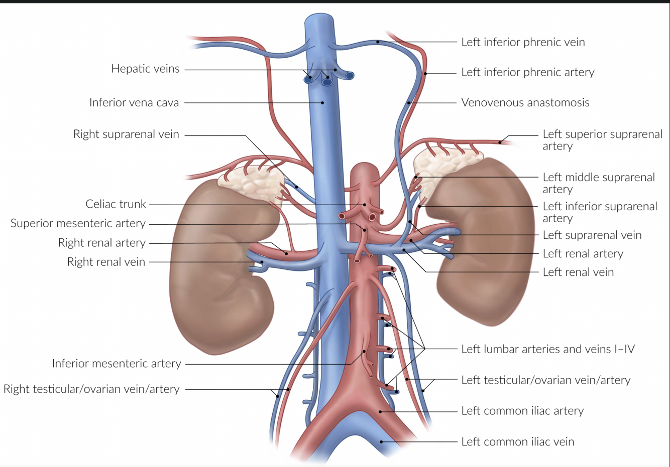 The left suprarenal and gonadal veins drain into the left renal vein, whereas on the right, they drain directly into the vena cava.