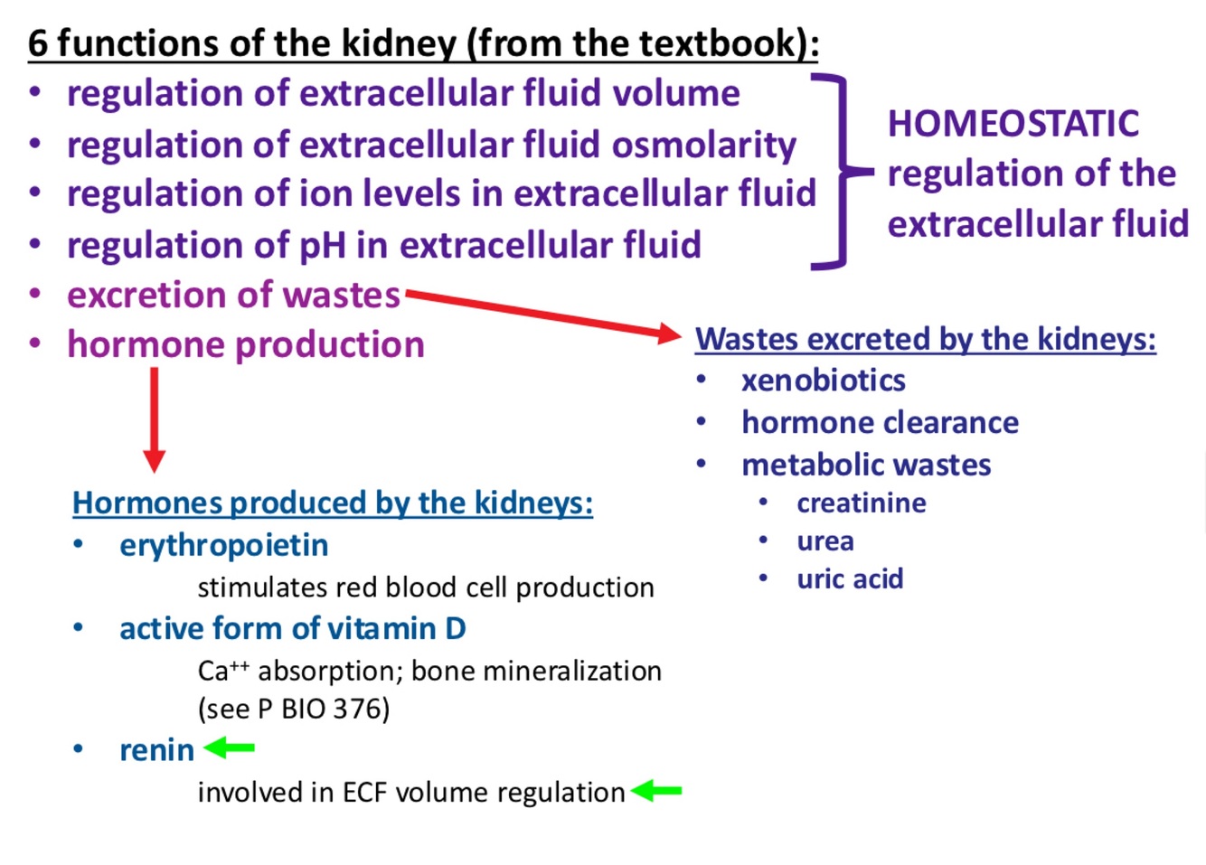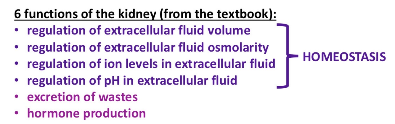 What is the main function of the Kidney? Extra: can you name all 6 in detail?