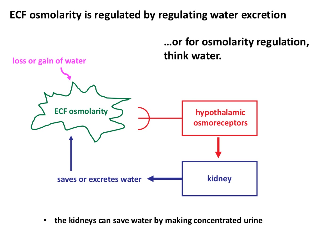 ECF osmolarity is the amount of water in your body relative to the amount of solutes in your body. How is ECF osmolarity regulated?