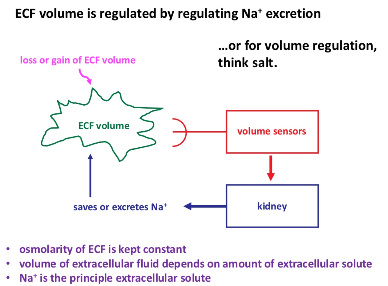 ECF volume is the amount of salt in your body. How is ECF volume regulated?