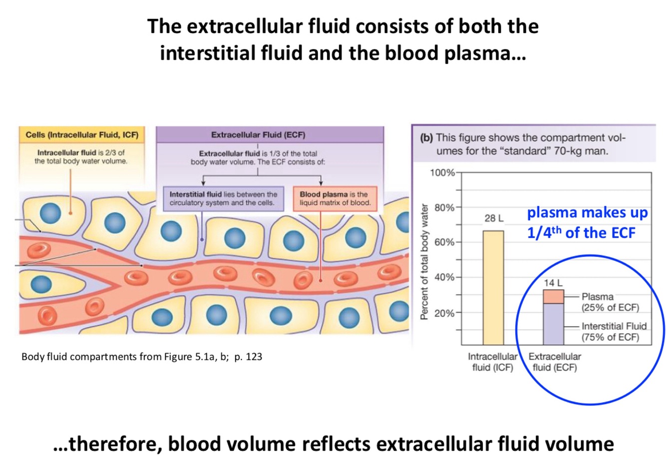 Blood plasma makes up about 1/4th of the ECF, meaning blood volume is a reflection of the ECF volume. Which then makes sense why a majority of regulatory sensors for ECF volume are in the circulatory system.
