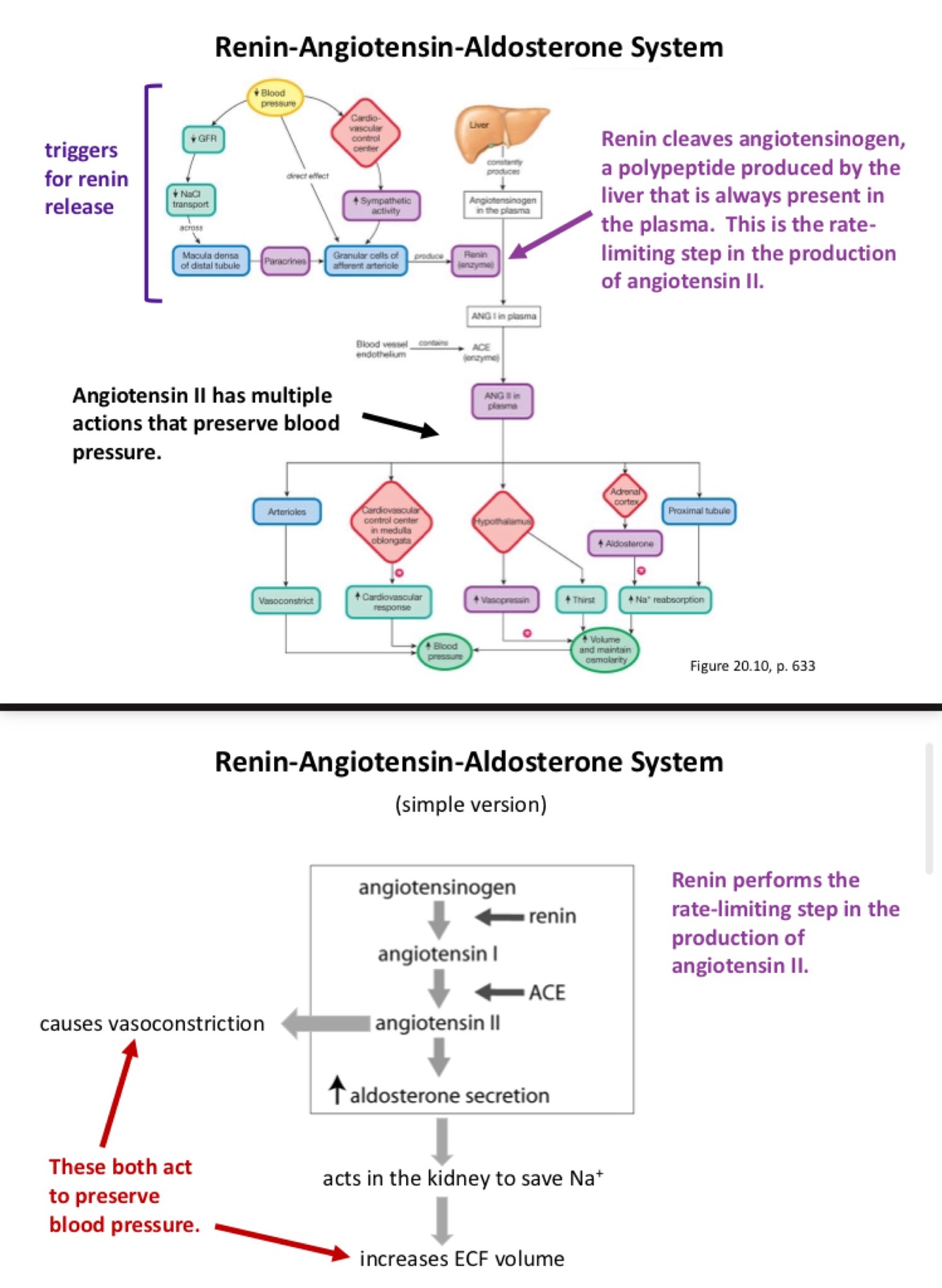 ANG 2 the acts the preserve blood pressure by 1: making blood vessels constrict, 2: increase ECF volume.
