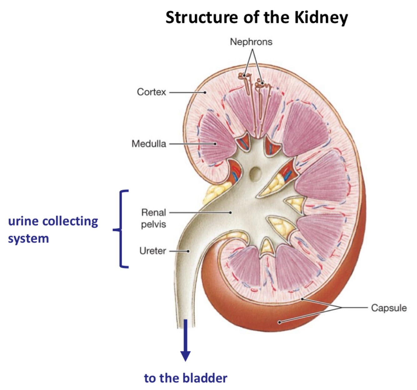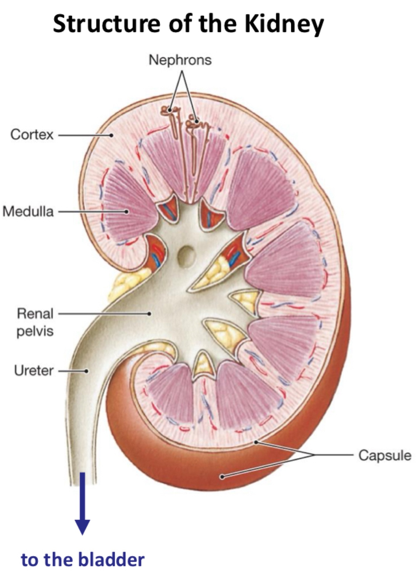 Blood flows to glomerulus that is surrounded by Bowman’s capsule.