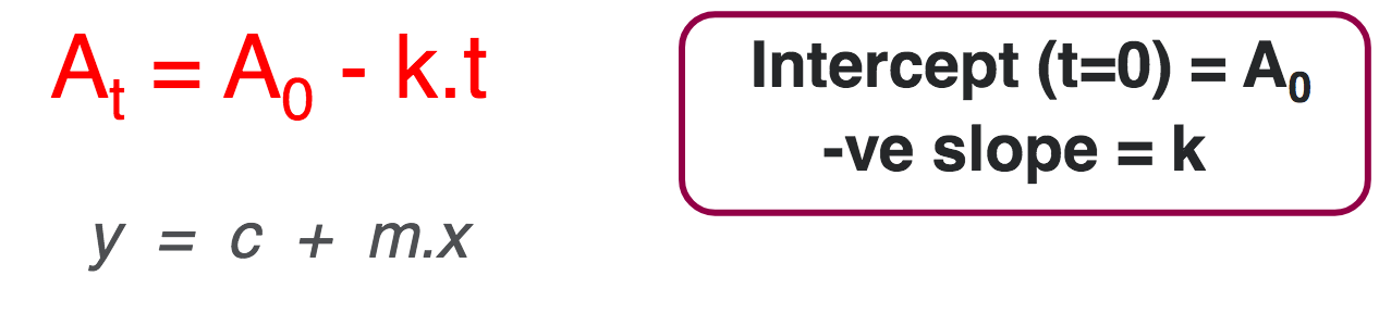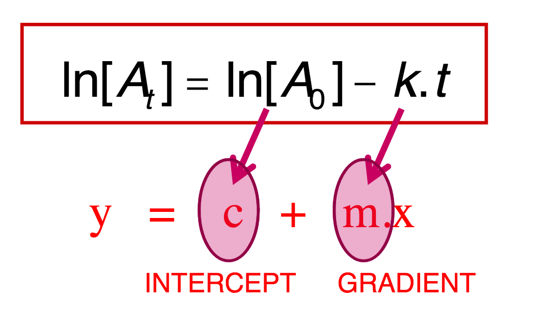 FIRST ORDER REACTIONS- WHEN USING Ln(At)- to work out rate of reaction (slope -k) - integrated rate law